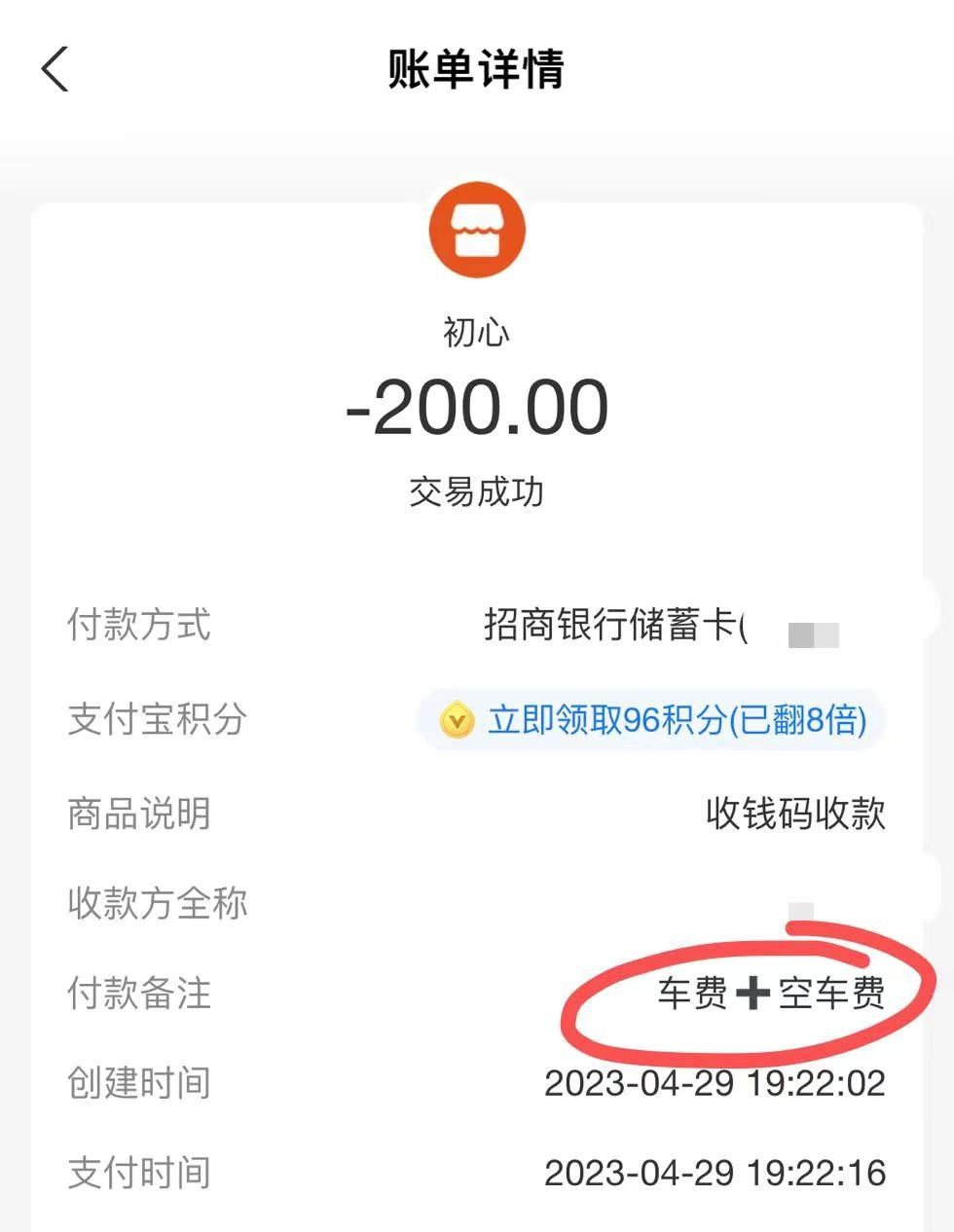 几经协商后,网约车司机表示,如果曾女士愿意取消订单,不走平台支付的话,“空驶费”可以只收30元。最终,曾女士向网约车司机的个人支付宝账号转账200元。