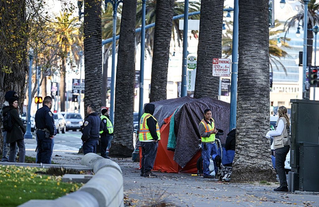 美国加利福尼亚州街头的无家可归者帐篷