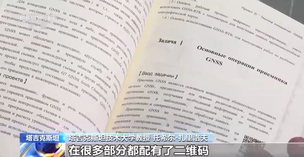 塔吉克斯坦技术大学教授 托希尔·扎里洛夫:这本专业教材有一个特别之处就是,在很多部分都配有了二维码。如果学生不能完全理解文章的意思,通过手机扫描二维码就会出现视频讲解,从而更生动地帮助学生学习。