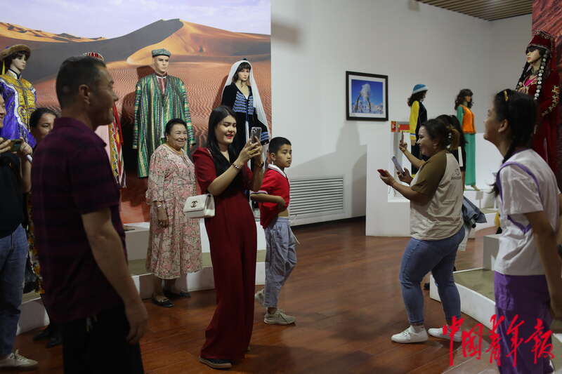 5月20日,新疆和田地区博物馆,“锦绣中华——56个民族服饰展”吸引了许多参观者拍照留念。展厅中陈列了各民族服饰85套,并为每套服装在传统服饰文化元素的基础上予以艺术再创作,既保留了民族服饰特点也兼具艺术观赏性。中青报·中青网记者孔斯琪/摄