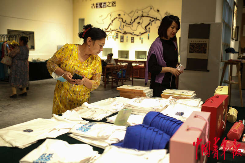 5月20日,新疆和田地区博物馆,纪念品商店中的文创T恤吸引游客驻足。中青报·中青网记者 孔斯琪/摄