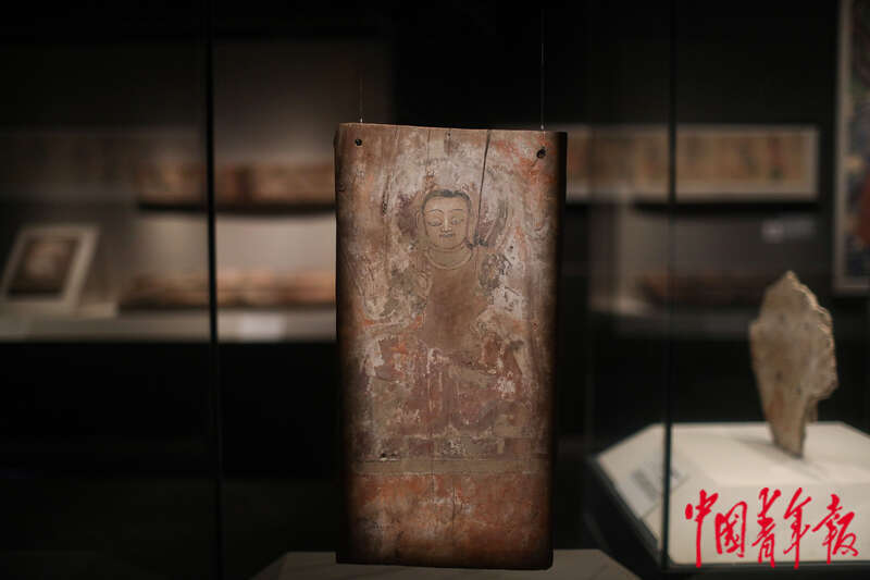 5月20日,新疆和田地区博物馆,出土于策勒县北沙漠的四臂神像木板画,约作于5-8世纪,是于阗绘画的代表作品。中青报·中青网记者 孔斯琪/摄
