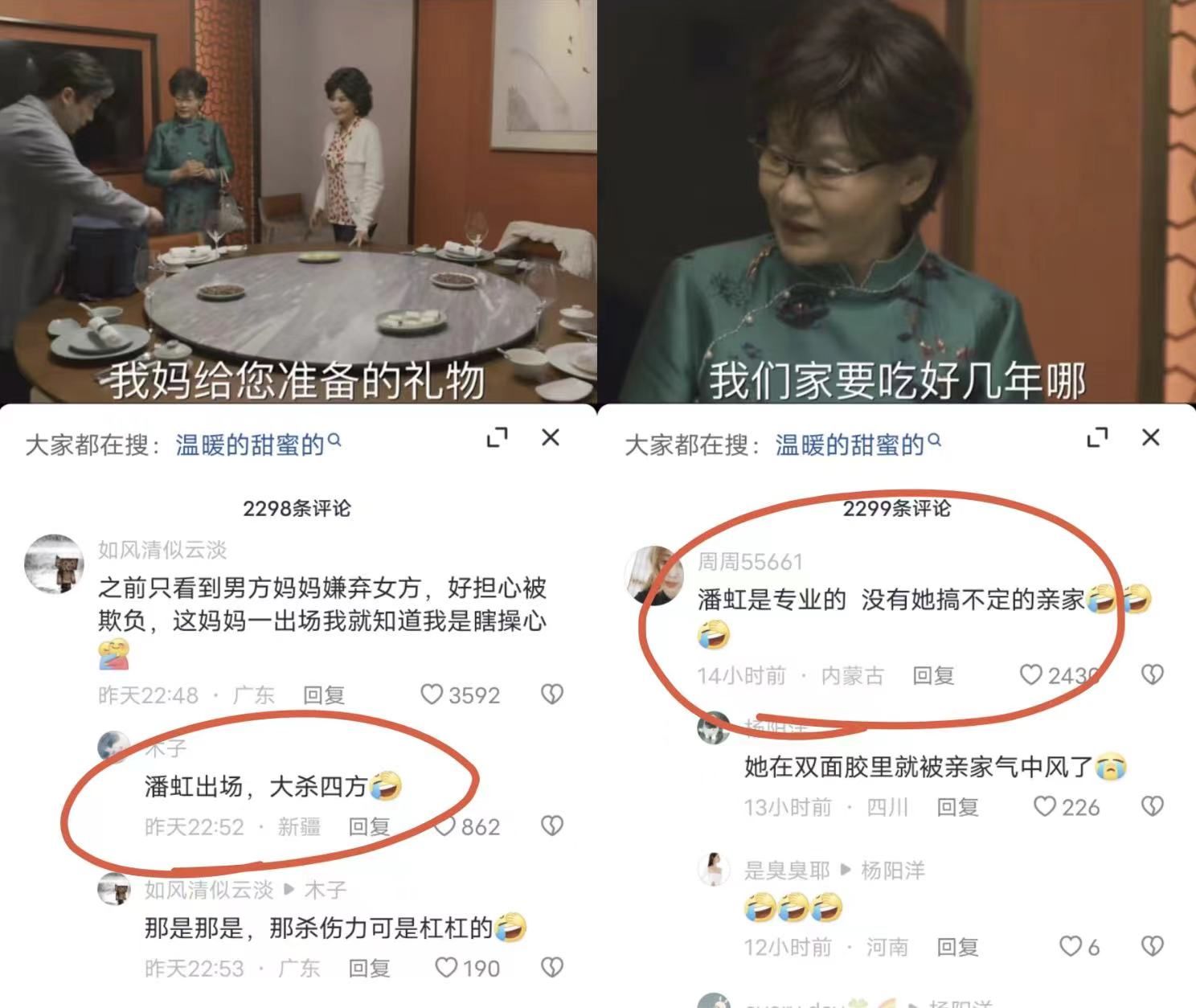 在《太阳每天都是新的》这篇文章,潘虹也提到她参演的第一部电视剧1994年要播出了。1990年代开启了一个中国电视剧的时代。这个时代的起源之一,就是1990年以女性为中心的电视剧《渴望》。而这三十多年来女性题材时装剧,大致可以分为三类:一是延续《渴望》的贤妻良母家庭剧,如《金婚》(2007)《父母爱情》(2014),《温暖的甜蜜的》的导演刘江曾经执导的《媳妇的美好时代》(2009)也可归到这类;二是表现现代都市女性的大女主剧,它们同时往往也是励志剧,如《我的前半生》(2017)《都挺好》(2019)《安家》(2020)《理想之城》(2021);三是晚近越来越多的女性群像剧,如《欢乐颂》(2016,2017,2022,2023)《三十而已》(2020)《爱很美味》(2021)。现今的各大平台上,显然后两类剧越来越多。这些剧的一大特点便是塑造能干的、坚强的、有类似企业家人格的现代女性,她们不断自我提升、自我完善,她们彼此竞争,也与男性竞争。