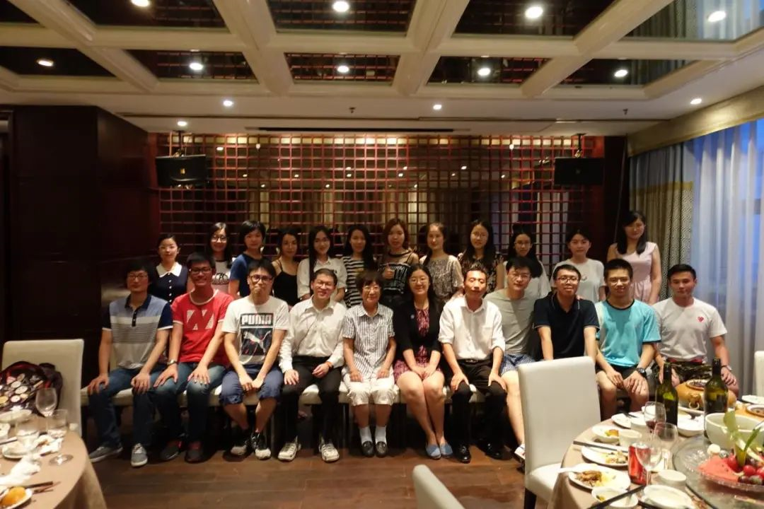实验室三代同堂合影:金志虎(前排左四)、导师贾珈教授(前排中)与贾珈导师蔡莲红教授(前排左五)。