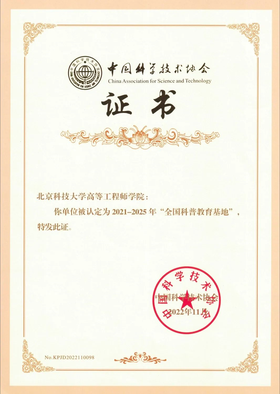 喜报!喜报!北科大新增2个全国科普教育基地!