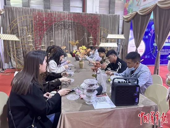 2023年4月9日,内蒙古包头市单身青年男女交友联谊,制作永生花。中青报·中青网记者 石佳/摄