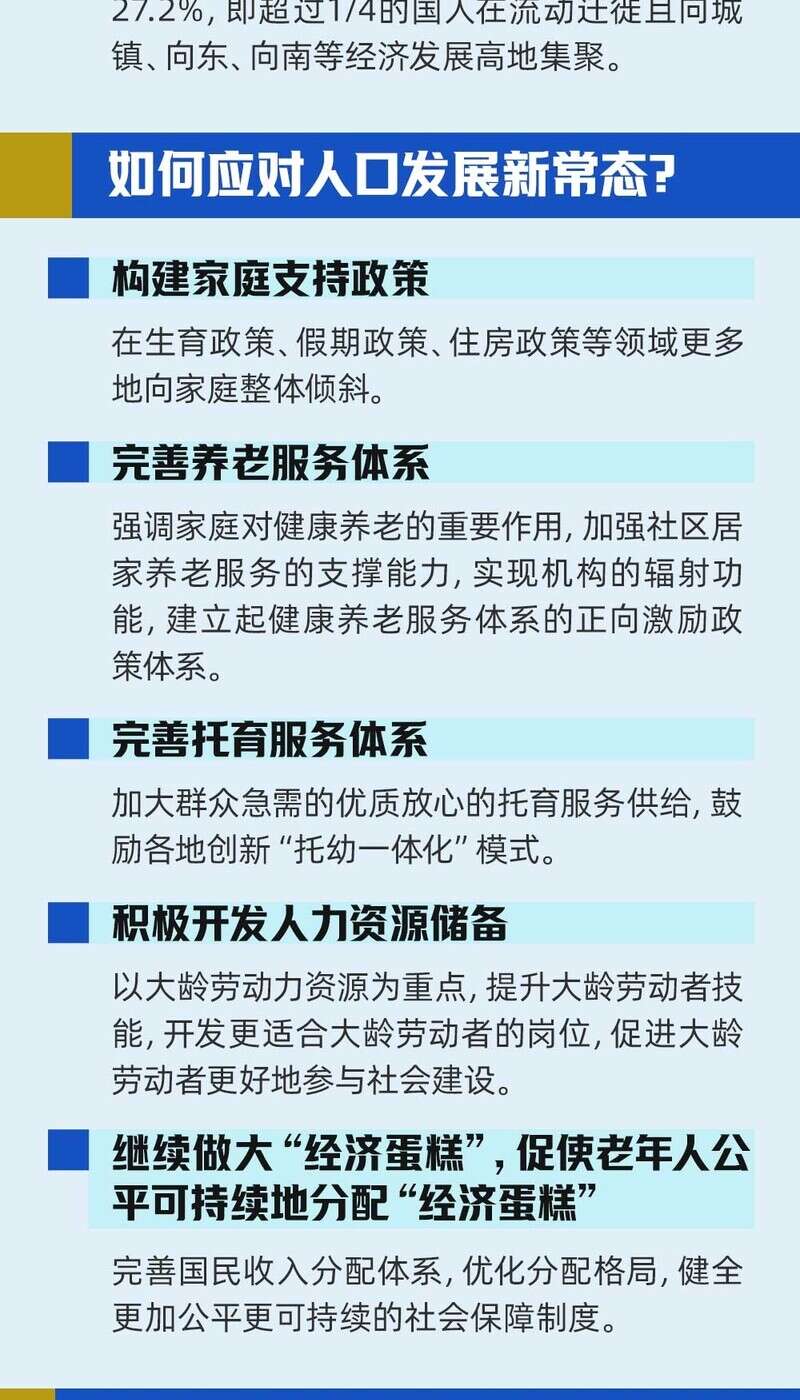 人口发展既要看数量,更要看质量。目前,我国人口红利向人才红利转变的潜力巨大,人口结构中还有“新红利”有待挖掘。如何应对人口新常态?戳图来看。