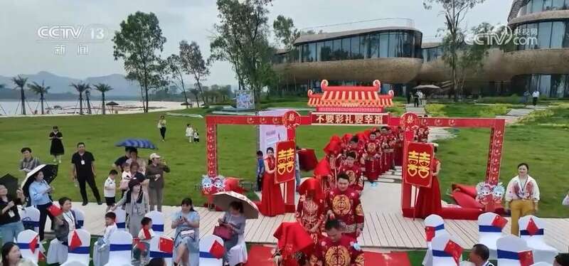 央视网消息:婚礼是人生中美好幸福的时刻,但一些地方喜宴铺张、低俗婚闹、随礼攀比等习俗,经常让喜事变了味、走了调。随着新型婚育文化的倡导,为爱减负的集体婚礼成为越来越多青年人的选择。五月是结婚的高峰期,多地举行了花式集体婚礼,一起来看一下。