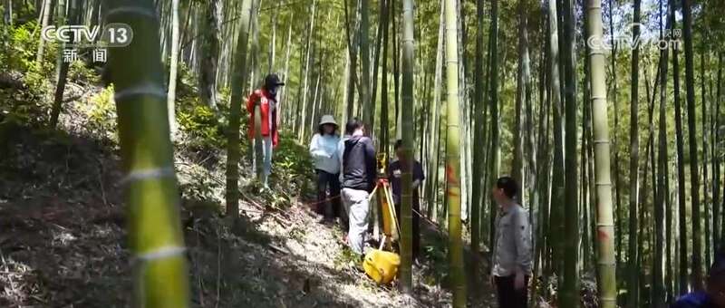 记者来到浙江安吉县的这片毛竹林时,赶上省里的农林专家到现场测量。