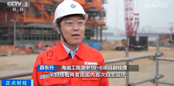 海油工程渤中19-6项目副经理 薛东升:平台搭载两套由国内首次自主设计、总装集成的天然气深度脱水装置,经过该装置处理后的天然气,即使在52兆帕高压、零下38℃的环境下,也不会有水析出,技术能力达到国际领先水平,可大幅提升油田稳定供气能力。