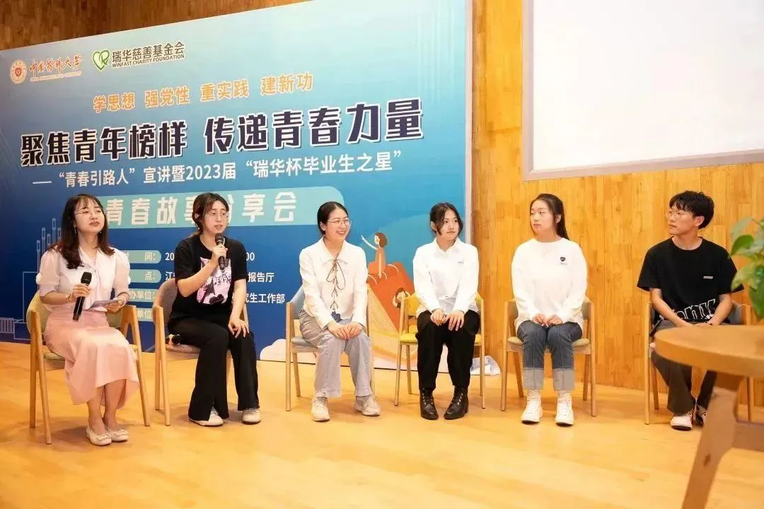 校党委副书记、副校长王正华,江苏省瑞华慈善基金会项目经理陈辉应邀出席“聚焦青年榜样 传递青春力量——‘青春引路人’宣讲暨2023届‘瑞华杯毕业生之星’青春故事分享会。相关职能部门负责人、有关学院分管学生工作负责人、辅导员代表及2021、2022级本科生班长代表参加活动。