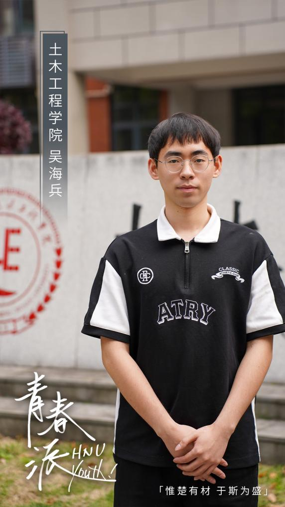 湖大人的青春是什么模样?在湖大,有多少个正值青春的学子,就有多少种灿烂的青春模样。“青春派”人物专栏,今日和你一起了解土木工程学院2020级硕士研究生吴海兵的故事。