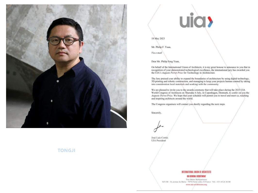 近日,国际建筑师协会(UIA)大奖揭晓,其中2023 Auguste Perret建筑技术奖授予同济大学建筑与城市规划学院袁烽教授(全球唯一获奖者),以表彰他“持续推动数字化设计、3D打印以及机器人建造技术研发,并积极将地方材料与社区营造融合,拓展了以人为本的建筑技术边界”。袁烽成为获此奖项的首位中国学者。