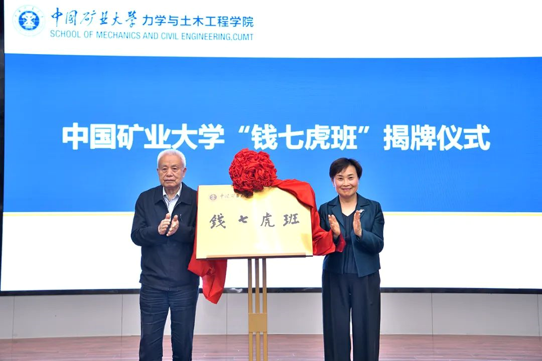 5月24日下午,中国矿业大学“钱七虎班”揭牌仪式在我校南湖校区力学与土木工程学院A108报告厅举行。中国工程院院士、“八一勋章”和国家最高科学技术奖获得者钱七虎,我校党委书记刘波、副校长叶继红出席仪式。力学与土木工程学院党委书记马占国主持揭牌仪式。