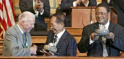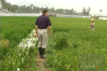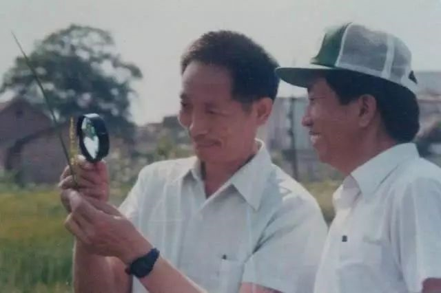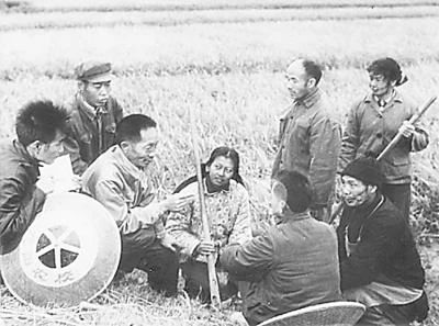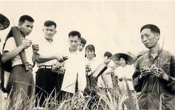 1967年,袁隆平在试验田介绍雄性不育水稻