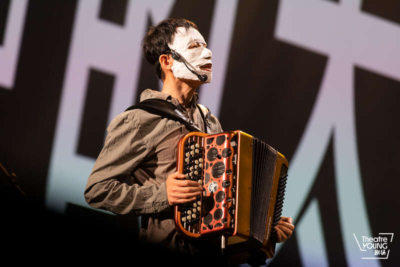 熊熊作业上来的时候,我一下子清醒了。漆白色的标志性面具,久闻其名但从未看过现场的一位。手风琴很重,把歌手压得拱背伸颈,不得不经常仰面唱歌,好从重压中挣脱出来。