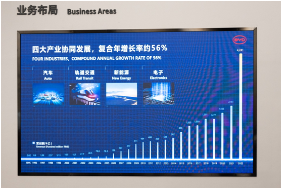 【环球网报道 记者 舒乙桁】“比亚迪四大产业协同发展,复合年增长率约56%”。6月14日下午,“‘粤’升湾区阔 潮涌看中国”线下走访团来到深圳市比亚迪股份有限公司时比亚迪讲解员介绍道。