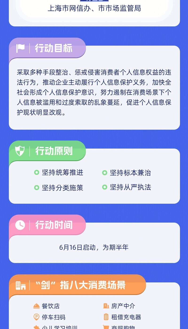 一图读懂“亮剑浦江”上海个人信息保护专项行动:为期半年,“剑”指八大消费场景