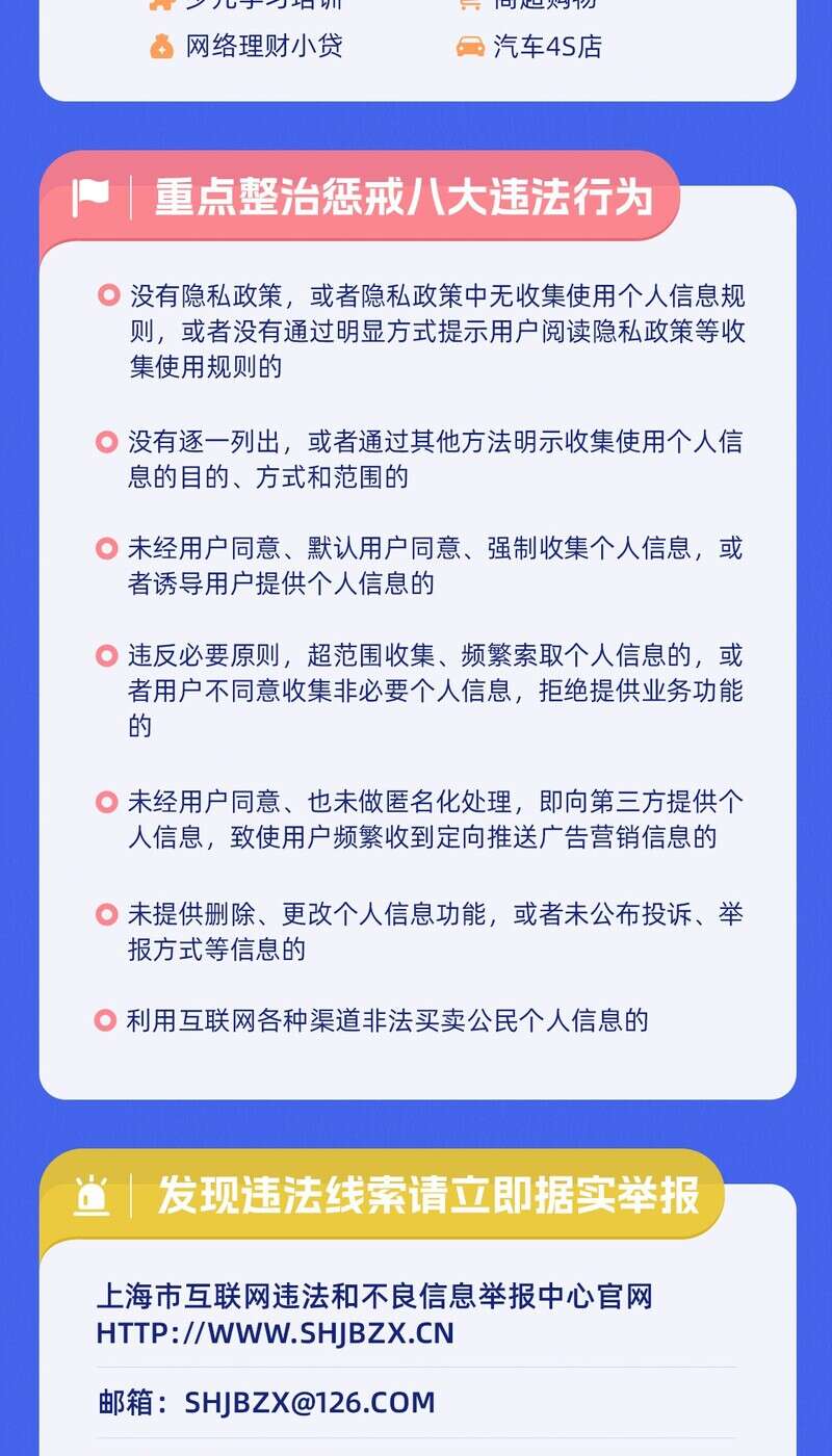 启动仪式,上海市网信办相关负责人表示,对涉及到的问题企业,上海市网信办、市市场监管局等多个部门将开展联合约谈、指导整改,并依托相关行业协会,对重点企业开展教育培训、以案说法,促进企业将获取消费者个人信息“最小和必要原则”进一步落到实处。