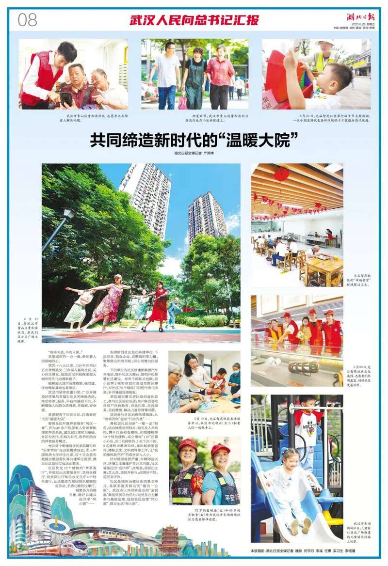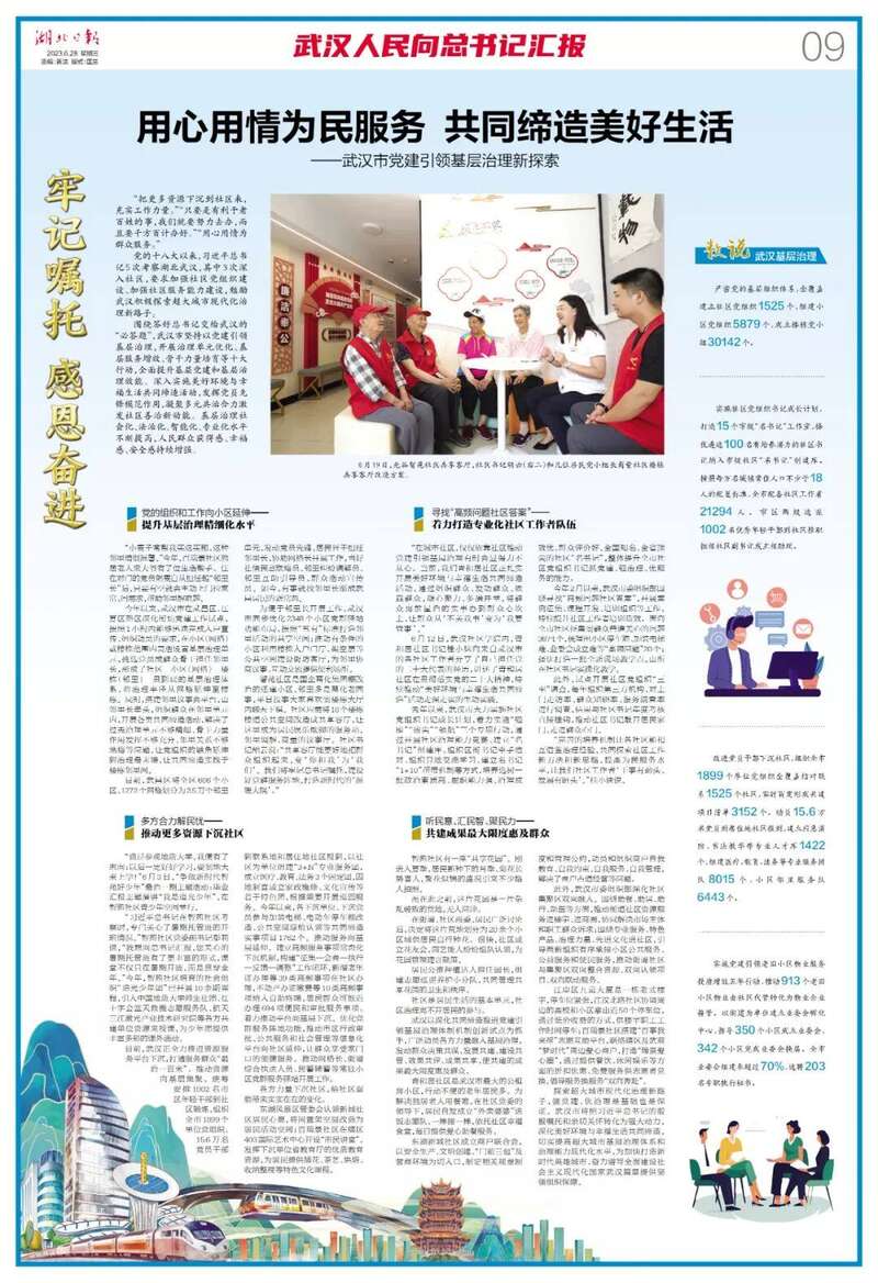 围绕答好总书记交给武汉的“必答题”,武汉市坚持以党建引领基层治理,开展治理单元优化、基层服务增效、骨干力量培育等十大行动,全面提升基层党建和基层治理效能。深入实施美好环境与幸福生活共同缔造活动,发挥党员先锋模范作用,凝聚多元共治合力激发社区善治新动能。基层治理社会化、法治化、智能化、专业化水平不断提高,人民群众获得感、幸福感、安全感持续增强。