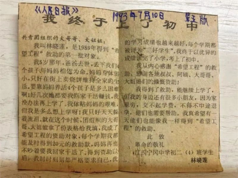 “大哥哥大姐姐,我能继续上学了!”30年前登上人民日报的孩子,如今再次续写感动!