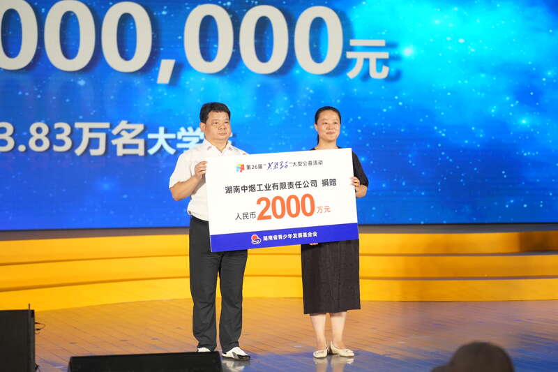2023年,湖南中烟工业有限责任公司再次向湖南省青少年发展基金会捐赠善款2千万元,用于开展第26届“芙蓉学子”大型公益活动。活动将在全国范围内资助2020名家境困难大学新生和590个优秀团队和个人,同时还将培训900名青年人才,鼓励支持100名青年创业者投身乡村振兴建设或科技产业。