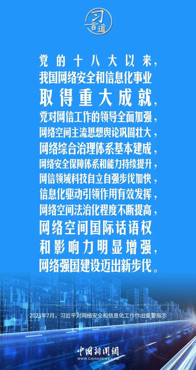 中共中央总书记、国家主席、中央军委主席习近平近日对网络安全和信息化工作作出重要指示,他指出——