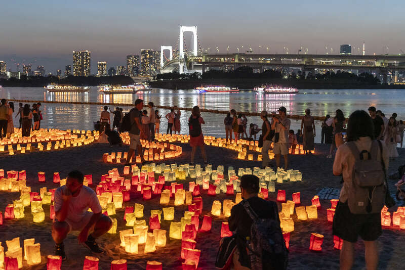 7月17日,日本东京,当地举行海天灯节。自2004年以来,海天灯节已经成为一项传统,人们在五颜六色的纸灯笼上点燃蜡烛,祈求海上平安。视觉中国供图