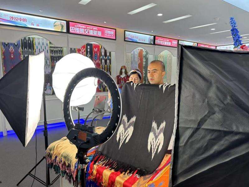 在电商产业园,一对来自和田市吉亚乡的夫妻正在直播销售艾德莱斯绸。今年一月,夫妻二人开始直播,目前他们的生活水平有了大大提升。来自巴西的网红塞米对和田电商助农模式表示肯定,她认为直播不仅可以帮他们获得更高收益,过上更好的生活,还能将新疆的好产品推广到更大市场。