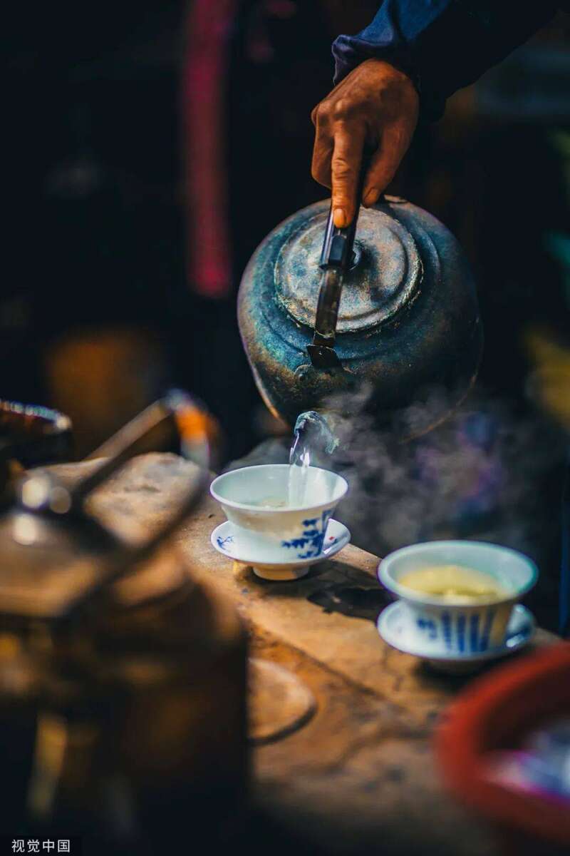 竹靠椅、小方桌、盖碗茶、茉莉香