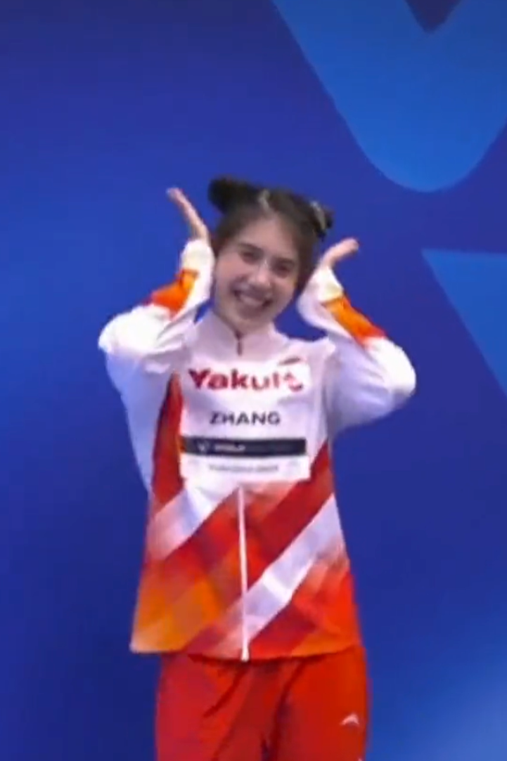赛后,张雨霏换上“哪吒”造型的发型,登上了领奖台。