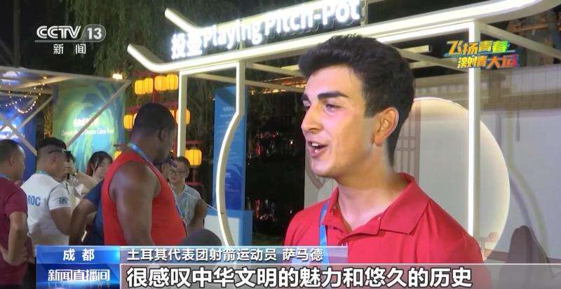 土耳其代表团射箭运动员 萨马德:成为朋友已经有五年了。之前我不知道他也会来大运会。射箭比赛第一天,在赛场看到他,真的非常惊喜。