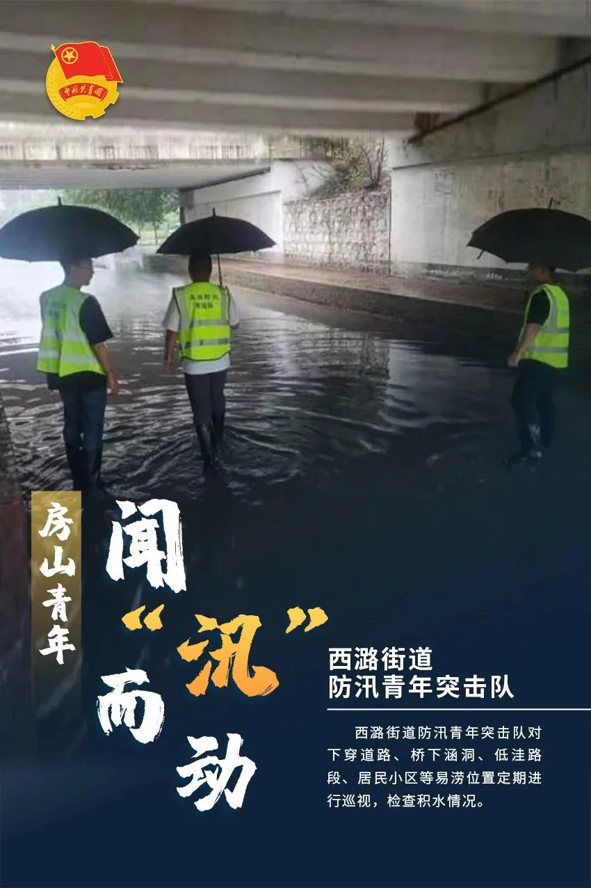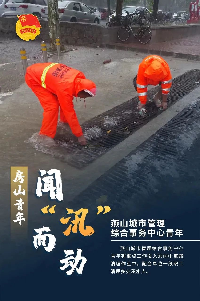 和平区排水管理所团员青年们以雨为令,自7月28日起全员24小时待命,第一时间上岗参与防汛,加强雨中巡视,最大限度降低恶劣天气对辖区道路交通和居民群众出行带来的影响。