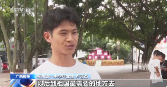 柳州铁一中学毕业生 卢艺杰:以后到祖国最需要的地方去。