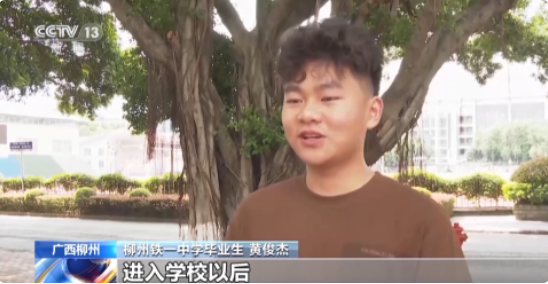 柳州铁一中学毕业生 黄俊杰:进入学校以后,努力学习、刻苦训练。