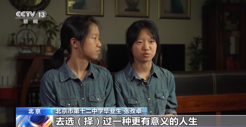 北京市第十二中学毕业生 张孜卓:去选择过一种更有意义的人生。