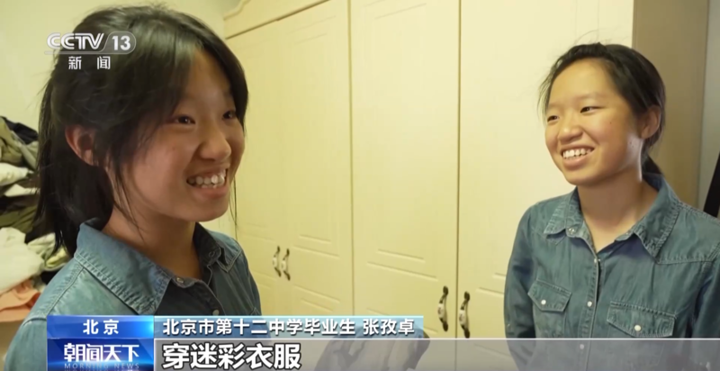 北京市第十二中学毕业生 张孜卓:一看就是爸爸对我们俩小时候长多高长什么样还没有太大印象,他给一个小姑娘买5XL的衣服,哪个小姑娘,三四岁穿迷彩衣服。