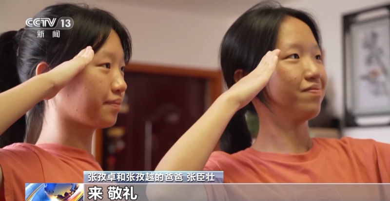 张孜卓和张孜越的爸爸 张臣壮:我在现场也肯定跟你一样,从小你妈妈一直陪着你们,我很少在家和你们在一起,很激动很高兴你们选择了这条道路,期望你们能在这个道路上无怨无畏地走下去。豆苗,欢迎你们成为一个准军人!敬礼!