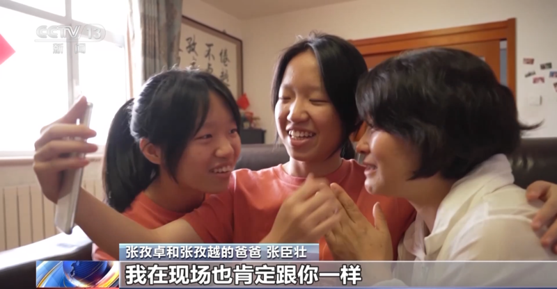 张孜卓和张孜越的爸爸 张臣壮:祝贺你们,豆苗!这么多年为这个目标一直默默奋斗,也感谢你们妈妈,你们妈妈在身边吗?