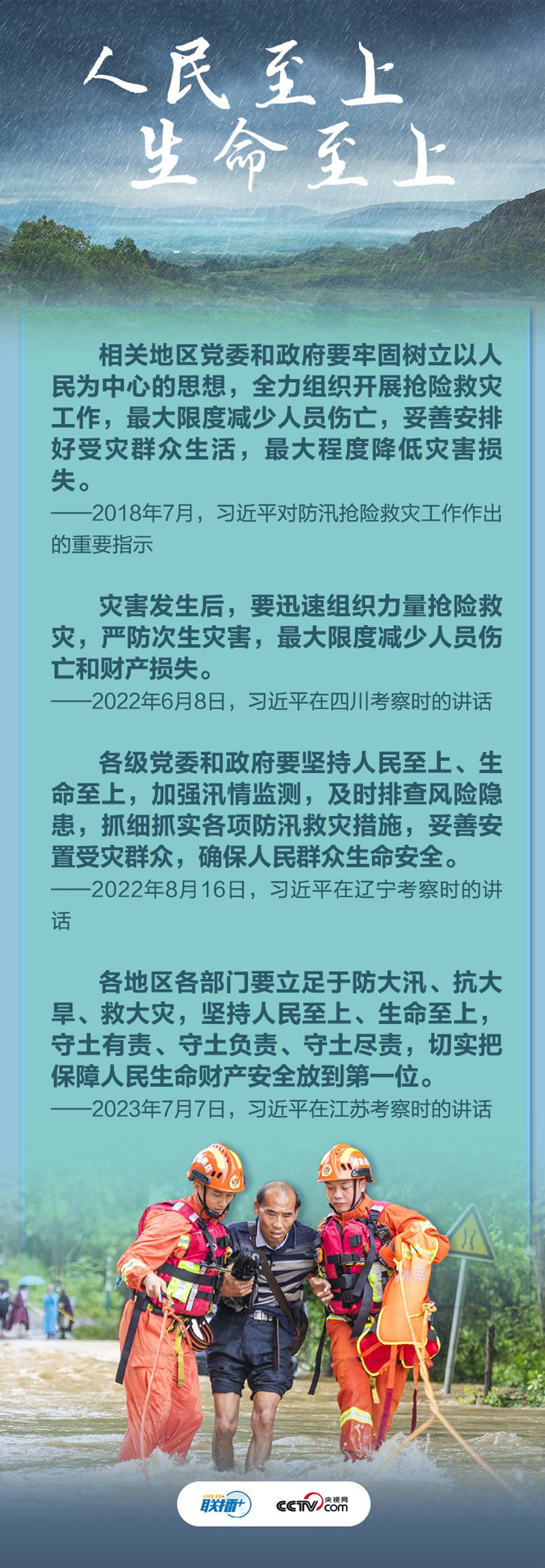 习近平总书记对防汛救灾工作作出重要指示,要求各地全力搜救失联、被困人员,做好受伤人员救治和遇难者家属安抚工作,尽最大限度减少人员伤亡。