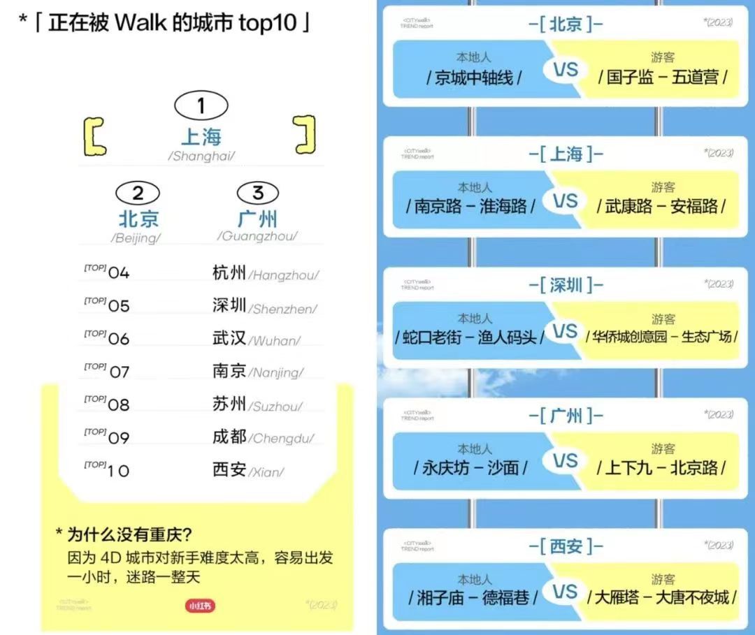 不过,让人有些惊讶的是,前几个月还是“特种兵旅游”风靡网络,怎么现在就变成Citywalk独霸榜首了?这二者,一个主打“来过”,用快节奏充实旅途,一个讲究“沉浸”,在城市生活里慢下来,看起来大相径庭。年轻人的文旅社交生活,难道真的差这么大?