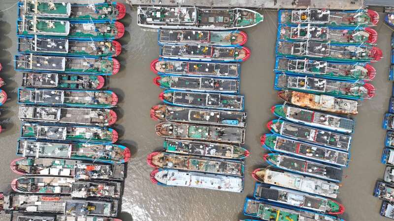 受台风“卡努”影响,浙江省渔业防台指挥部研究决定:原定8月1日中午12时开捕时间统一推迟,所有渔船一律在港避风,休闲渔船全部停止营业,海上养殖人员全部撤离上岸。新华社发(陈永建摄)