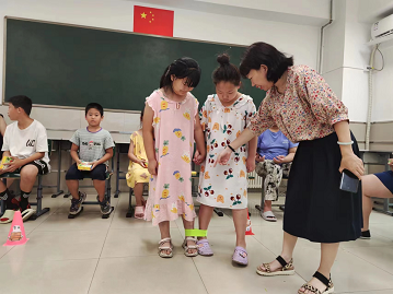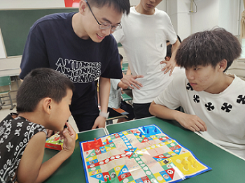 第一天他们举行了“童心同行”趣味折返跑、“分类我在行”趣味套圈等互动小游戏,让孩子们在欢笑中迅速拉近彼此距离;第二天又增加了“非遗绒花扭扭棒”和“欢乐飞行棋”环节,让实习大学生和青年志愿者与孩子们现场组队,手把手演示工艺制作和游戏环节,期间还穿插课业答疑和诗词分享互动,寓教于乐、增长见识。