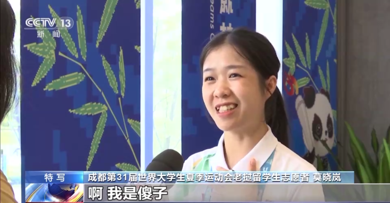 成都第31届世界大学生夏季运动会老挝留学生志愿者 莫晓岚:第一次去快递站的时候,快递人员跟我们讲四川话,我也听不懂,他(说)你是啥子,啊,我是傻子?然后我就愣了一下,旁边的人给我解释。他其实是跟我问,你叫什么名字。