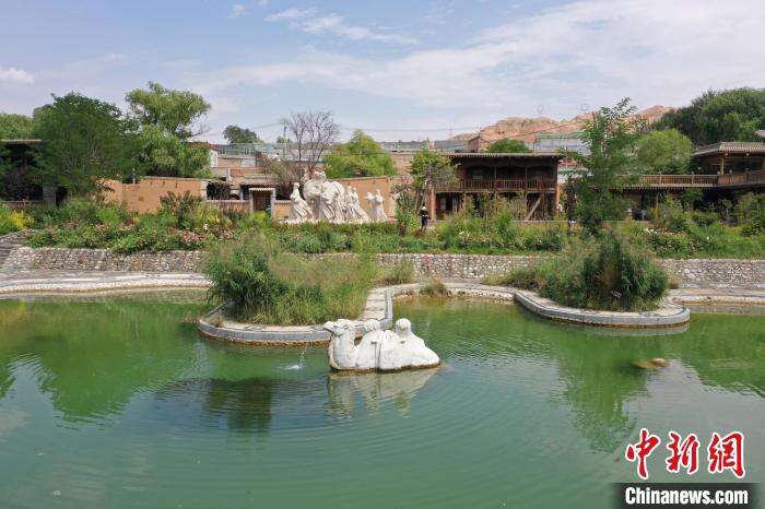 当日下午,一行人前往撒拉族历史文化地标骆驼泉。一泓清泉间,白骆驼石雕像静静伫立。外国博主、留学生聆听传说故事,了解撒拉族历史文化。
