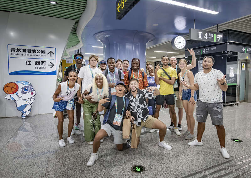7月31日,成都,参加大运会的运动员及代表团成员乘坐地铁。
