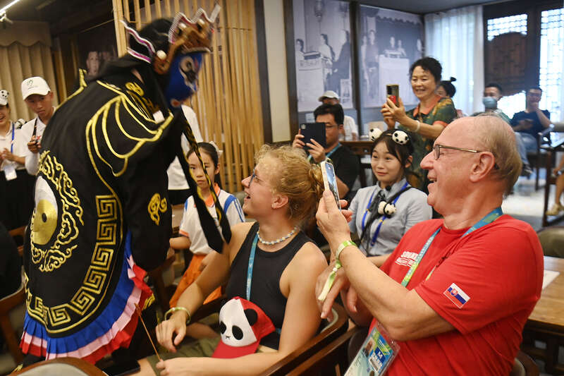 8月4日,成都,参加大运会的运动员及代表团成员感受巴蜀文化。