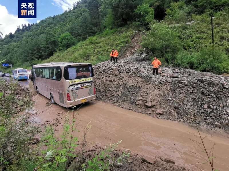 甘肃宕昌县发生泥石流灾害致交通一度中断 道路已部分恢复通行