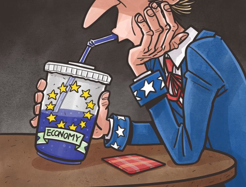 美对欧洲的持续吸血造成了欧洲的经济困境。(来源:中国日报 蔡艨 英文《中国日报》2023年8月10日8版)