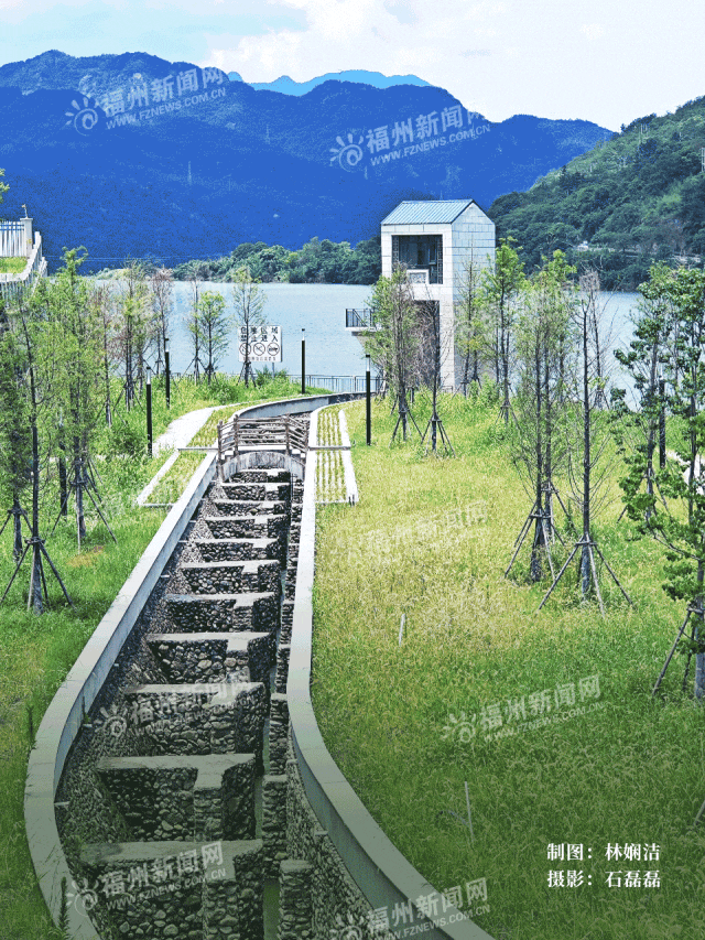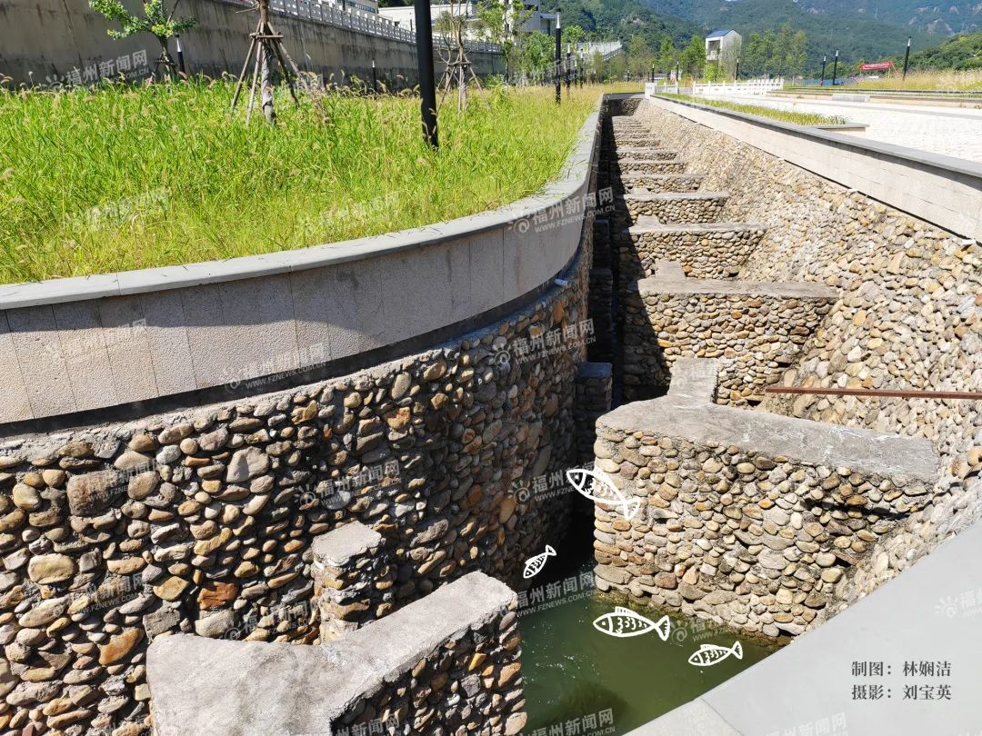 这条长达1373米的通道名为仿自然过鱼通道,是福建省首条鱼道。鱼道包括高、低进口,过鱼通道,汇合池,防洪闸,出口,观察室和采样室等,以及必要的补水设施和进口接底设施。